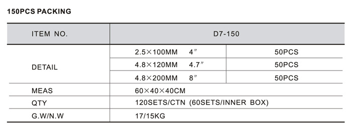 Home Products Nylon Cable Tie Series PACKING OF SERIES D PACKING OF SERIES D 150PCS PACKING