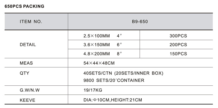 PACKING OF SERIES B 650PCS PACKING