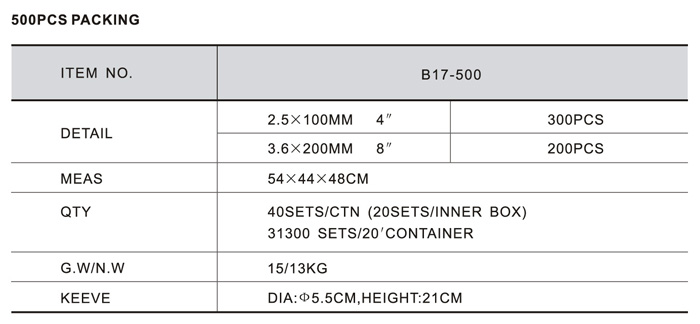 PACKING OF SERIES B 500PCS PACKING